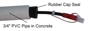* Probe Assembly may be inserted into 3/4" PVC or copper pipe (thermowell) embedded into concrete at a specified depth. Rubber plug seals the thermowell. |
